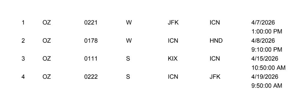 ❖ International air tickets from NYC to Tokyo, Osako to Korea, Korea come back to NYC