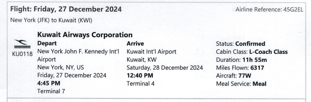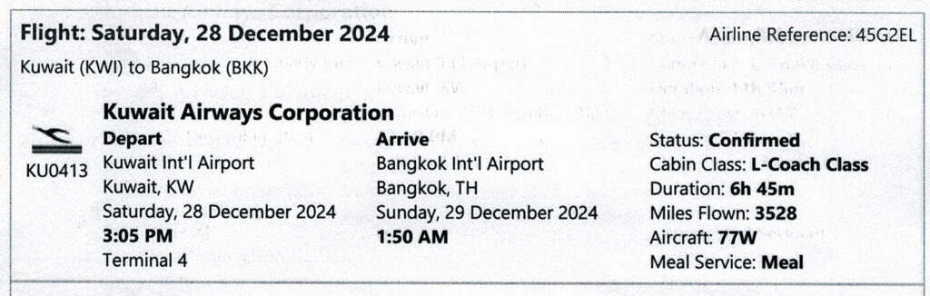 Day 1: DEC27Fly New York to Bangkok