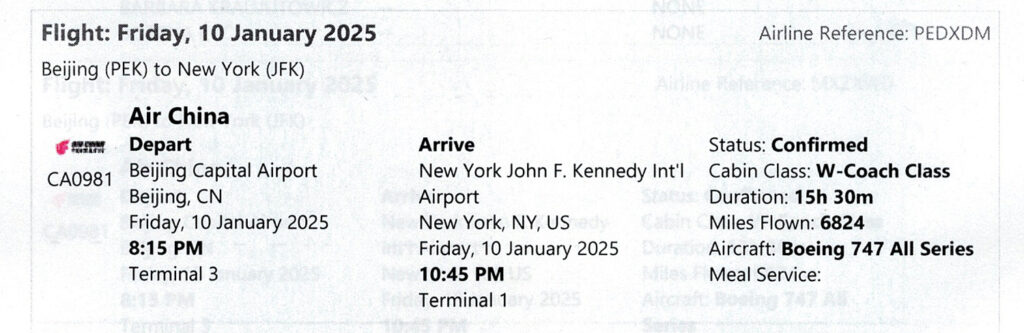 Dzień 15-10 I:  Przelot Hongkong (CHINY) – Nowy Jork (B)